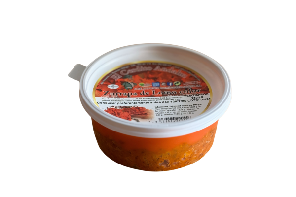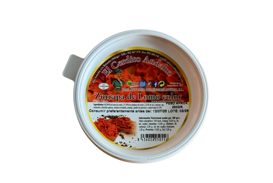 La Zurrapa de Lomo color est un produit de charcuterie andalou traditionnel, généralement consommé au petit-déjeuner, similaire à un pâté ou une tartinade à base de longe de porc.